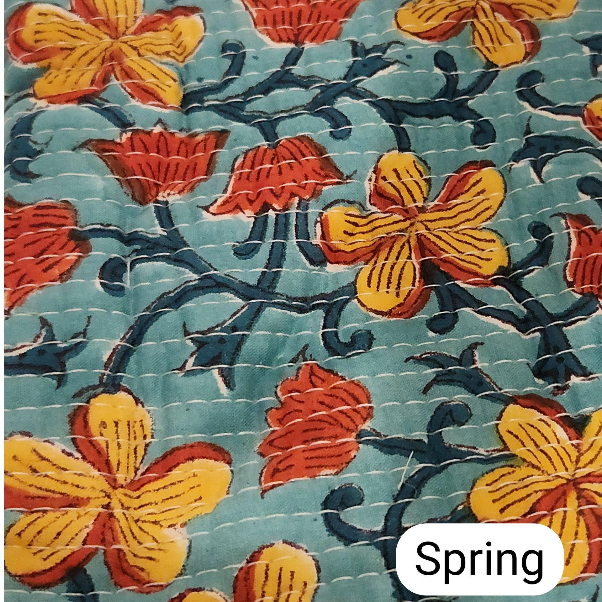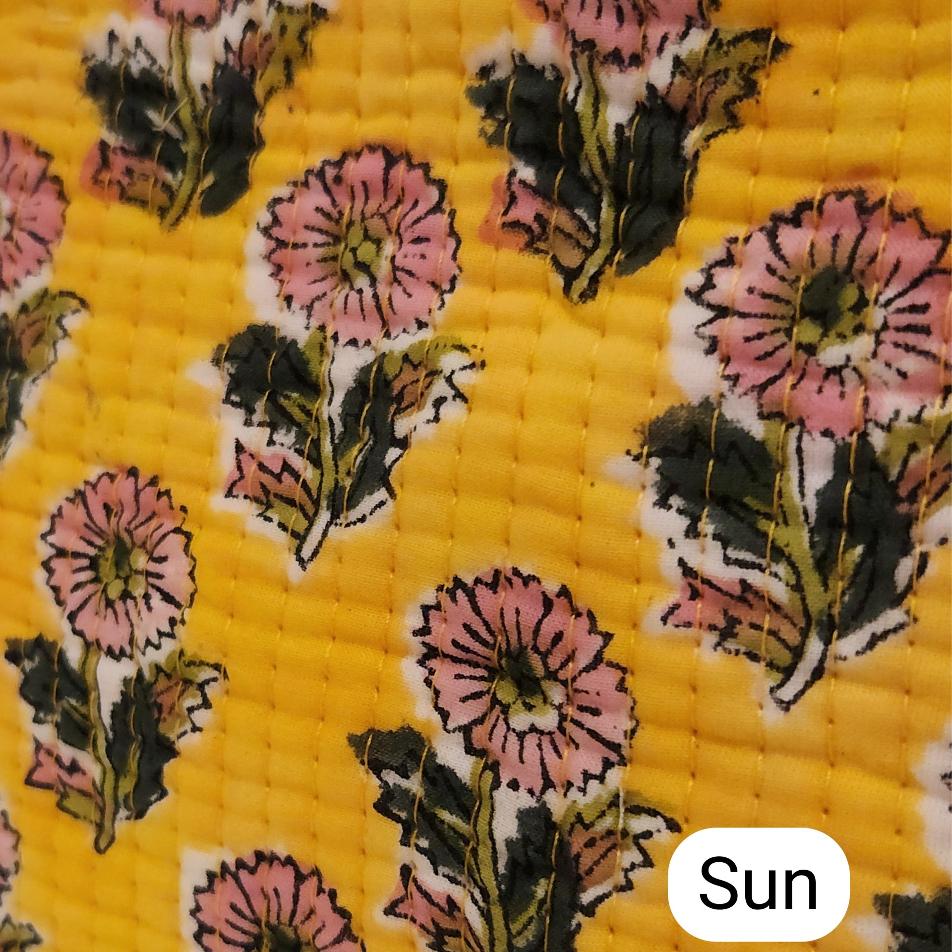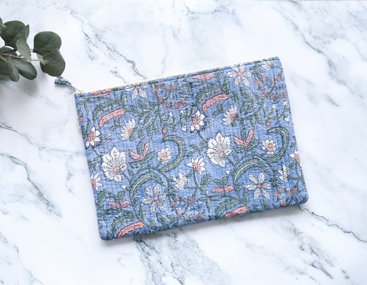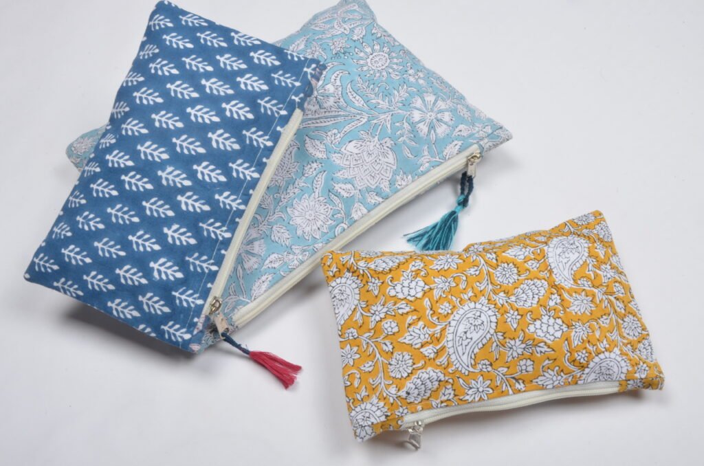 Our Floral pouch features a beautiful hand block printed bright floral print on the outside and lining on the inside.