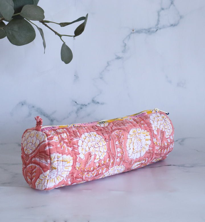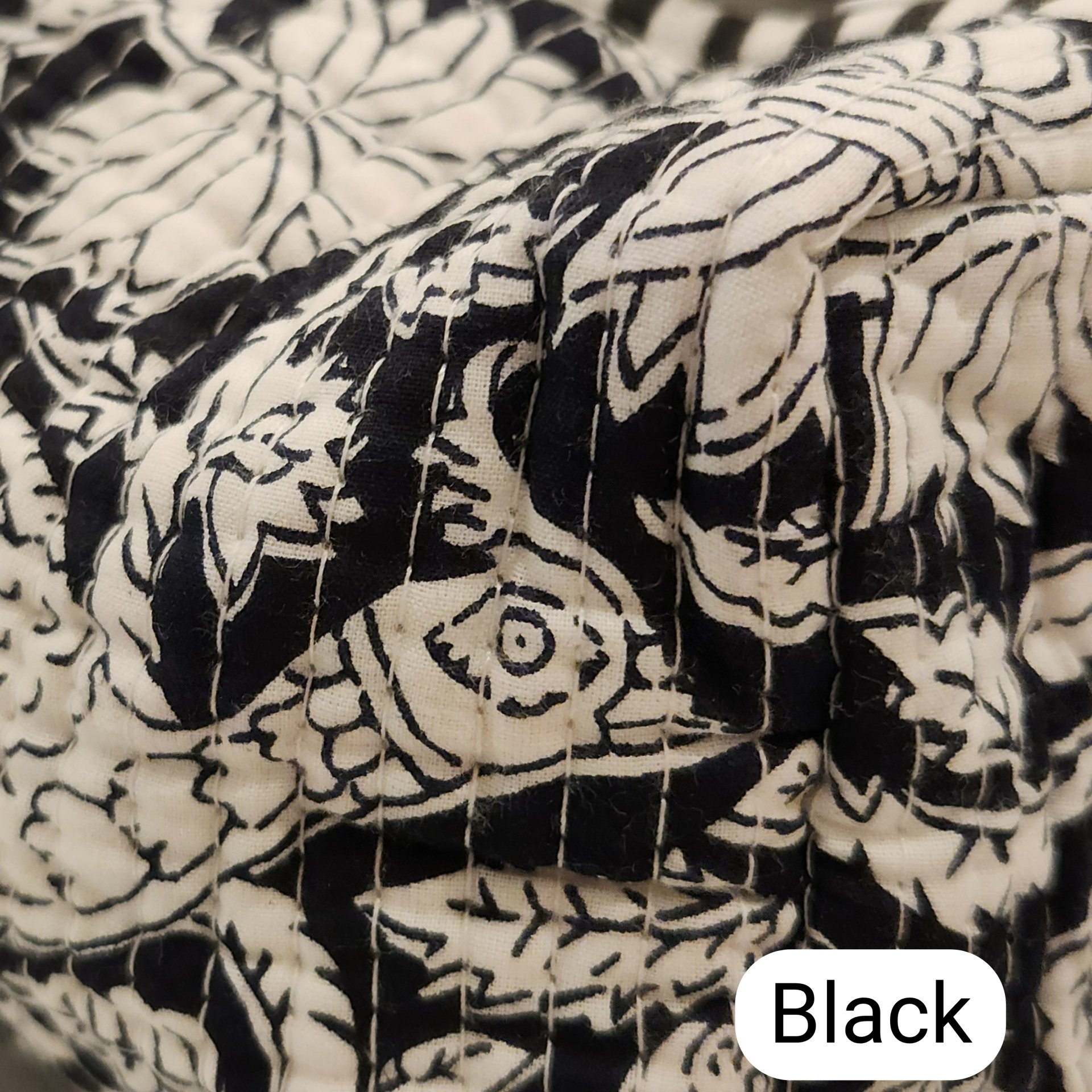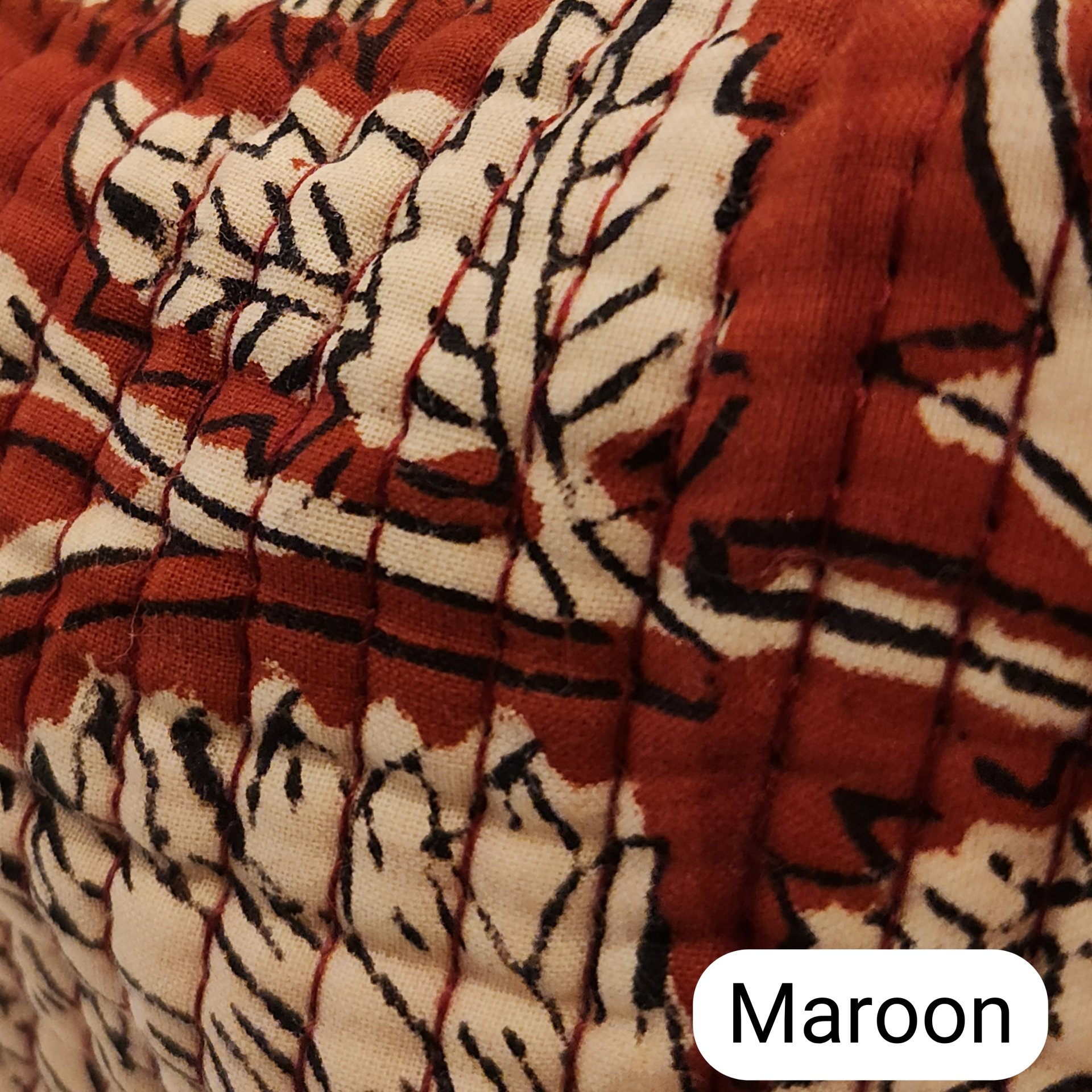 This stunning makeup pouch has been crafted from quilted cotton block print fabric. Decorative horizontal stitching details with zipper closure makes it beautiful and classy.