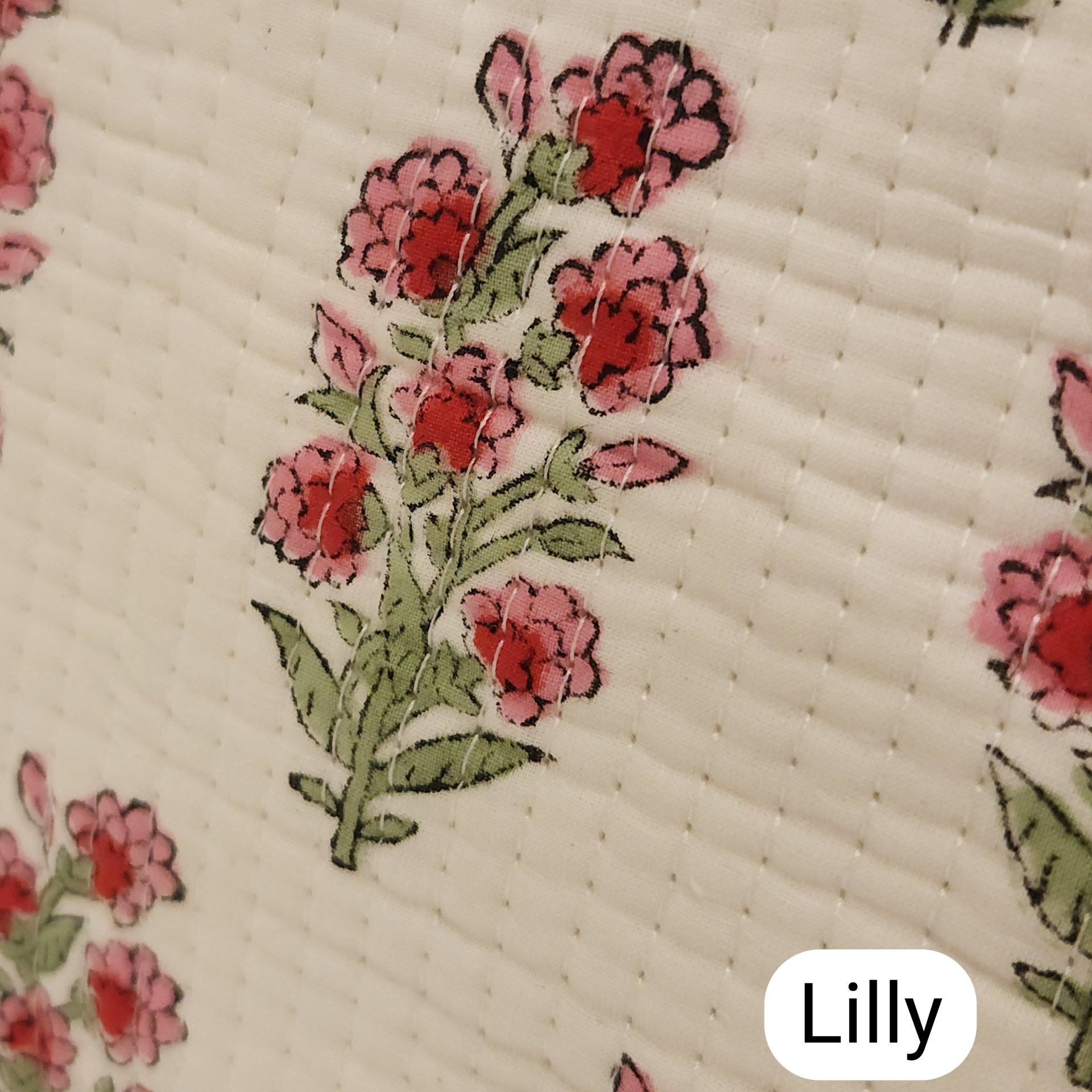 Our Floral pouch features a beautiful hand block printed bright floral print on the outside and lining on the inside.