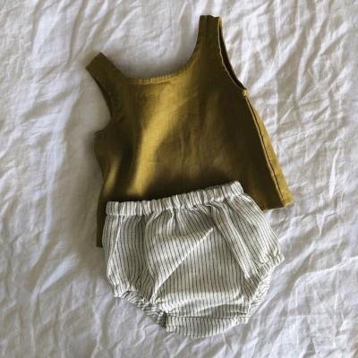 Unisex Summer Time Light Weight Baby Sleeveless Linen Button up 2 Piece Set