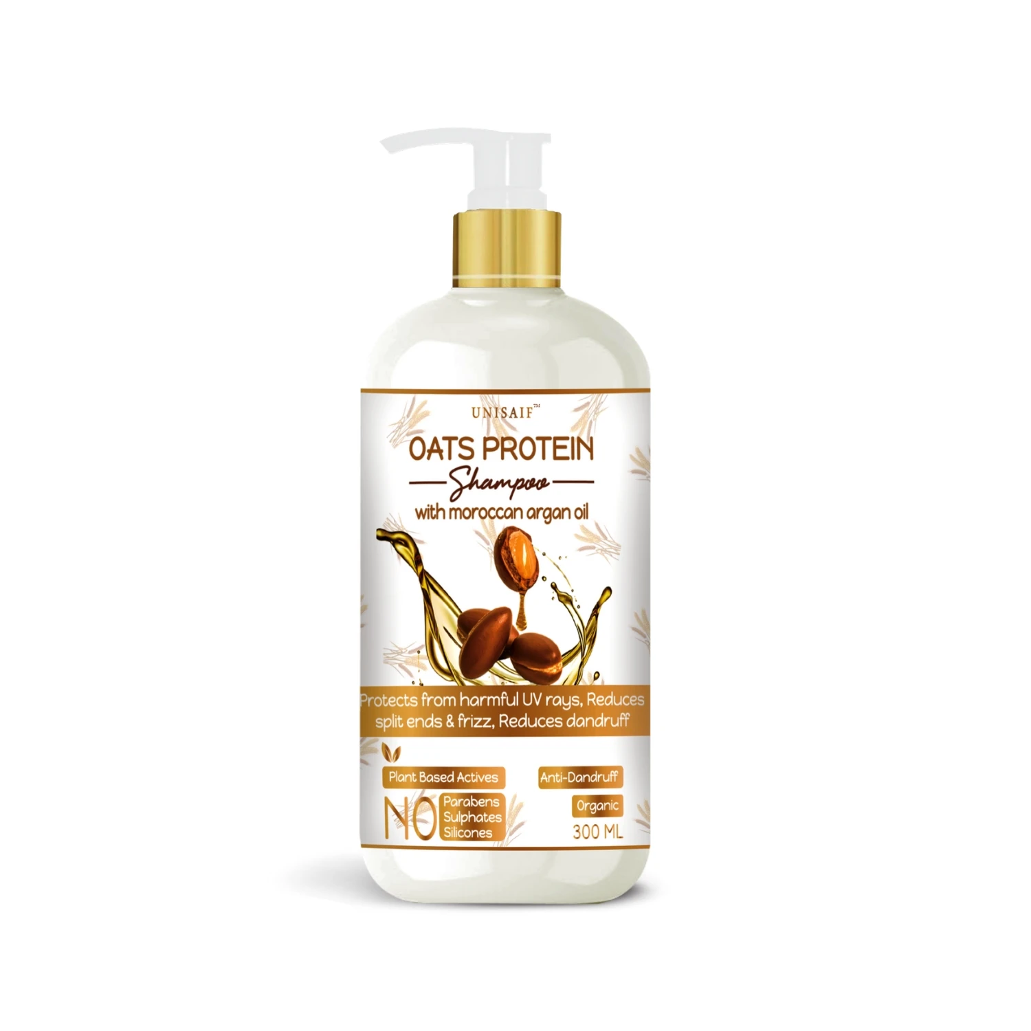 UNISAIF's Oats Protein Shampoo with moroccan argan oil, hydrolised silk protein, hydrolised oats protein, hydrolised keratin makes your hair shiny and breakage free. Presence of hydrolyzed oats promotes strengthening and adds extra nourishment to sheer and thick hair type. Milk protein keeps your hair manageable by enhancing keratin damage repair. Helps in Preventing dandruff and dryness to your scalp. Suitable for thick and fine hair type.