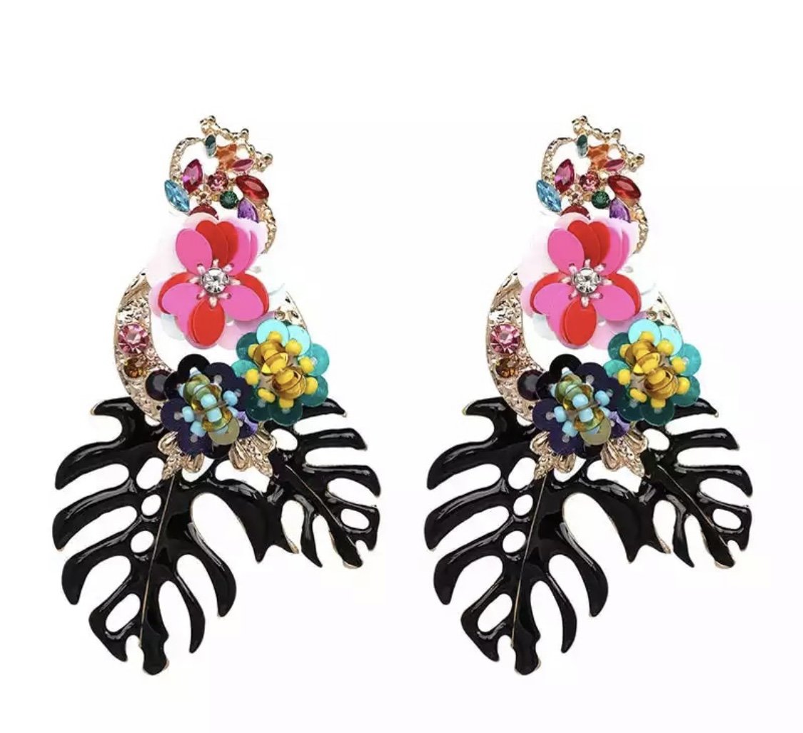 Black leaves big earrings