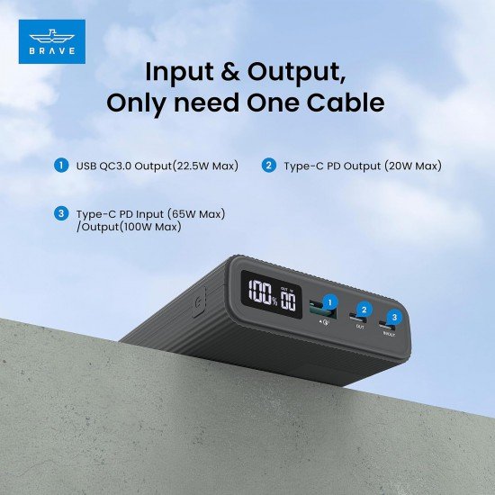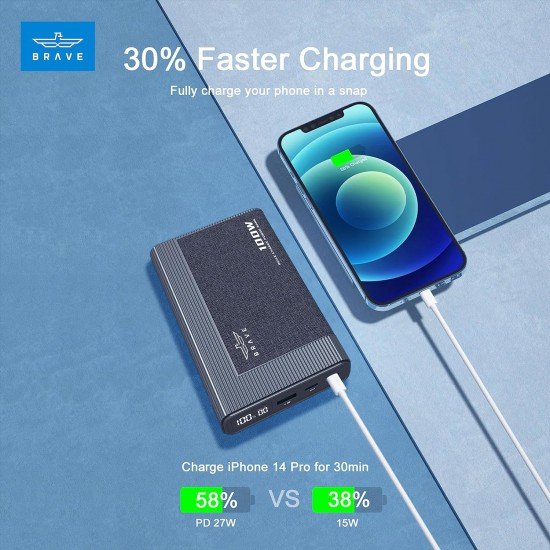 【Power Bank for Laptop】: BRAVE Portable Charger Equipped with PD3.0,QC3.0, and capable of 100W of fast charging speed for your Laptop! Fully charge a 2022 13" Macbook Air in an hour.