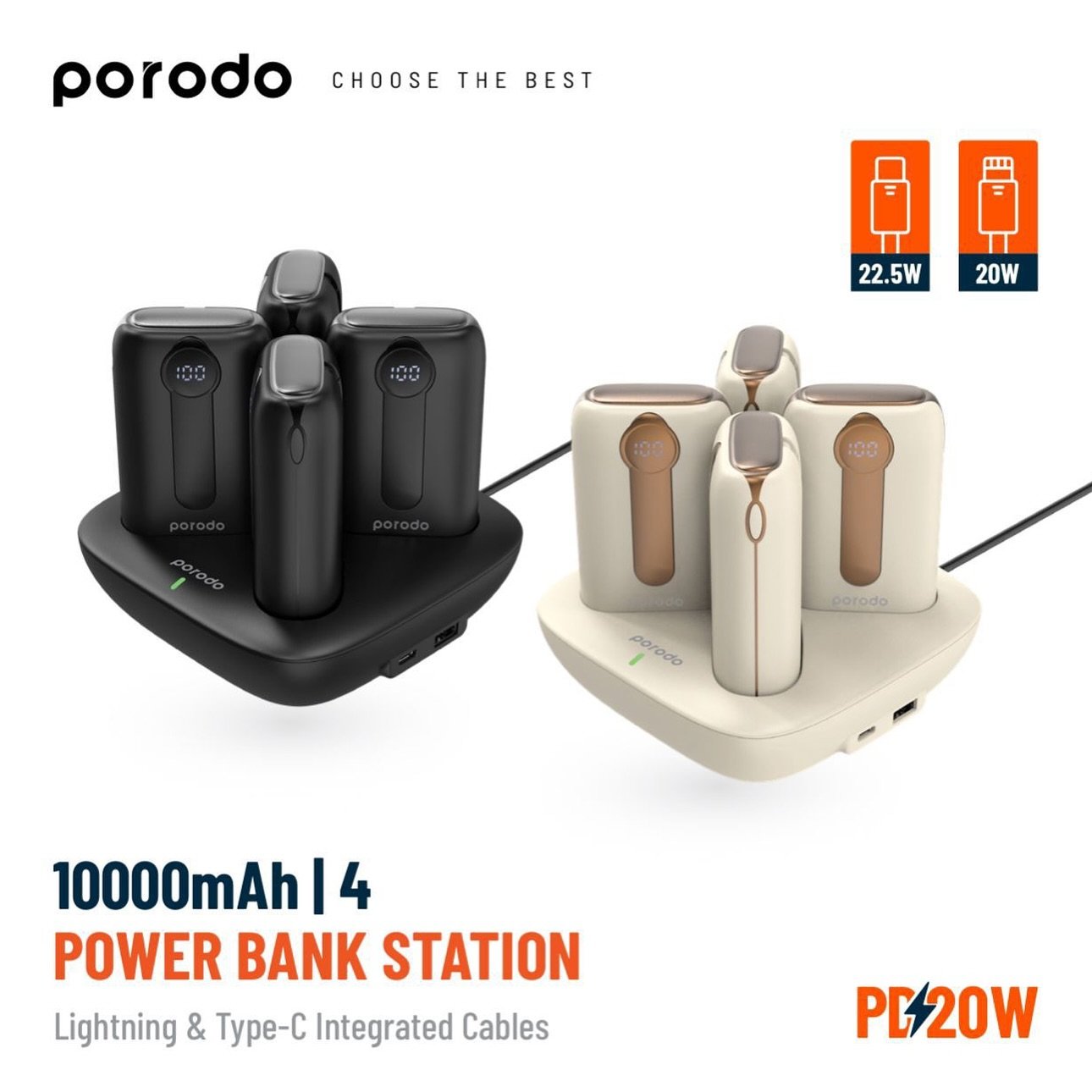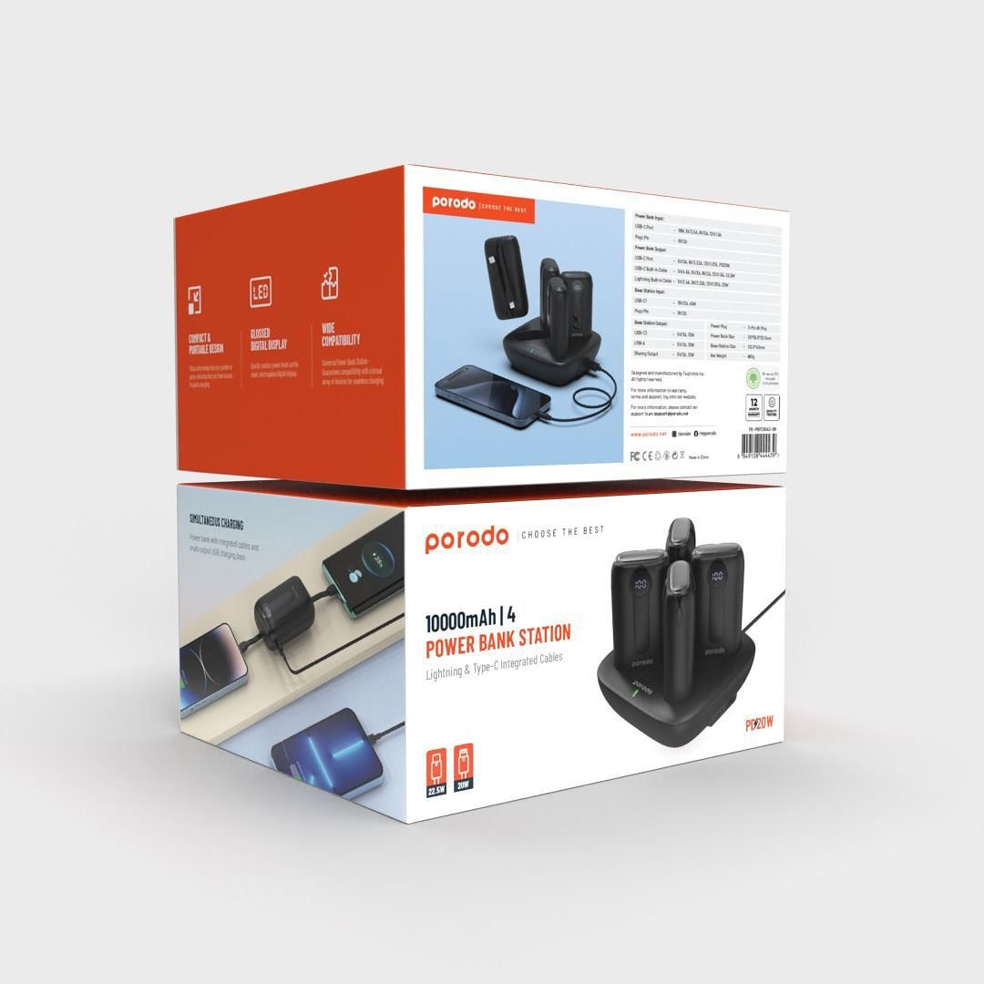 Porodo* 10000mAh 4 Power Bank Station Lightning/Type-C